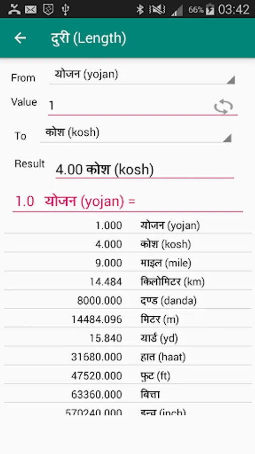 - Length include: Kosh, Gaj, Feet, Inch, Centimeter, Milimeter, Meter, Bhitta, Hatt, Danda & Angul