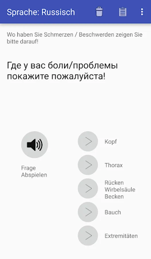 AnamTrans was designed by and for healthcare professionals. AnamTrans help you both in your medical history, as well as your diagnosis with non-German-speaking patients. Currently AnamTrans offers over 120 pre yes / no questions, which have been translated into 14 different languages. The medical history questions were not only translated but eingesprochen by the translators in the respective language. This allows to let you read all questions in the app as well. Because us the quality of our translations and the voice recording is very important, we have to translate almost all translations by native speakers. That is, we do not use automatic translation. We offer you the opportunity to deposit any given by the patient response. The answers you can always retrieve in a filterable response protocol.