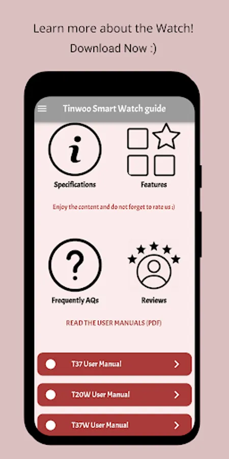 Tinwoo Smart Watch guide is a review app that will give you an idea of how Tinwoo Smart Watch guide works.