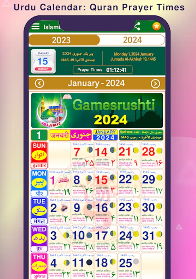 urdu calendar 2023, 2024 urdu calendar, islamic 2023, 1445-1446 hijri calender,