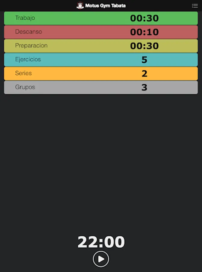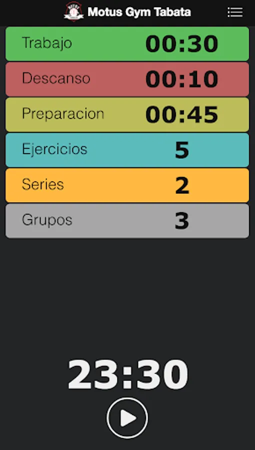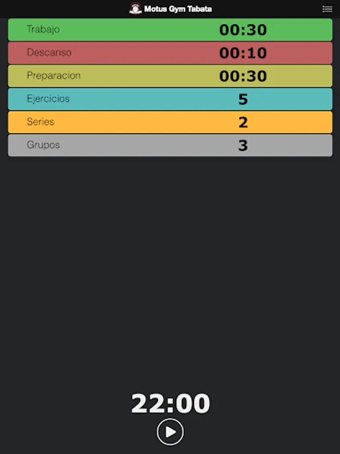 Motus Training Timer is a timer set for Functional Training and other activities.