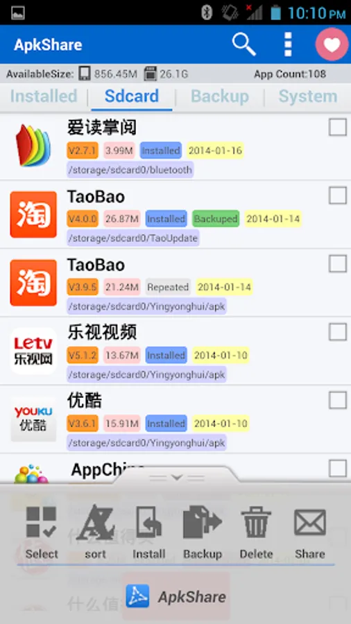 ApkShare is a versatile applied management software for managing Apk uninstalled and Apk installed .