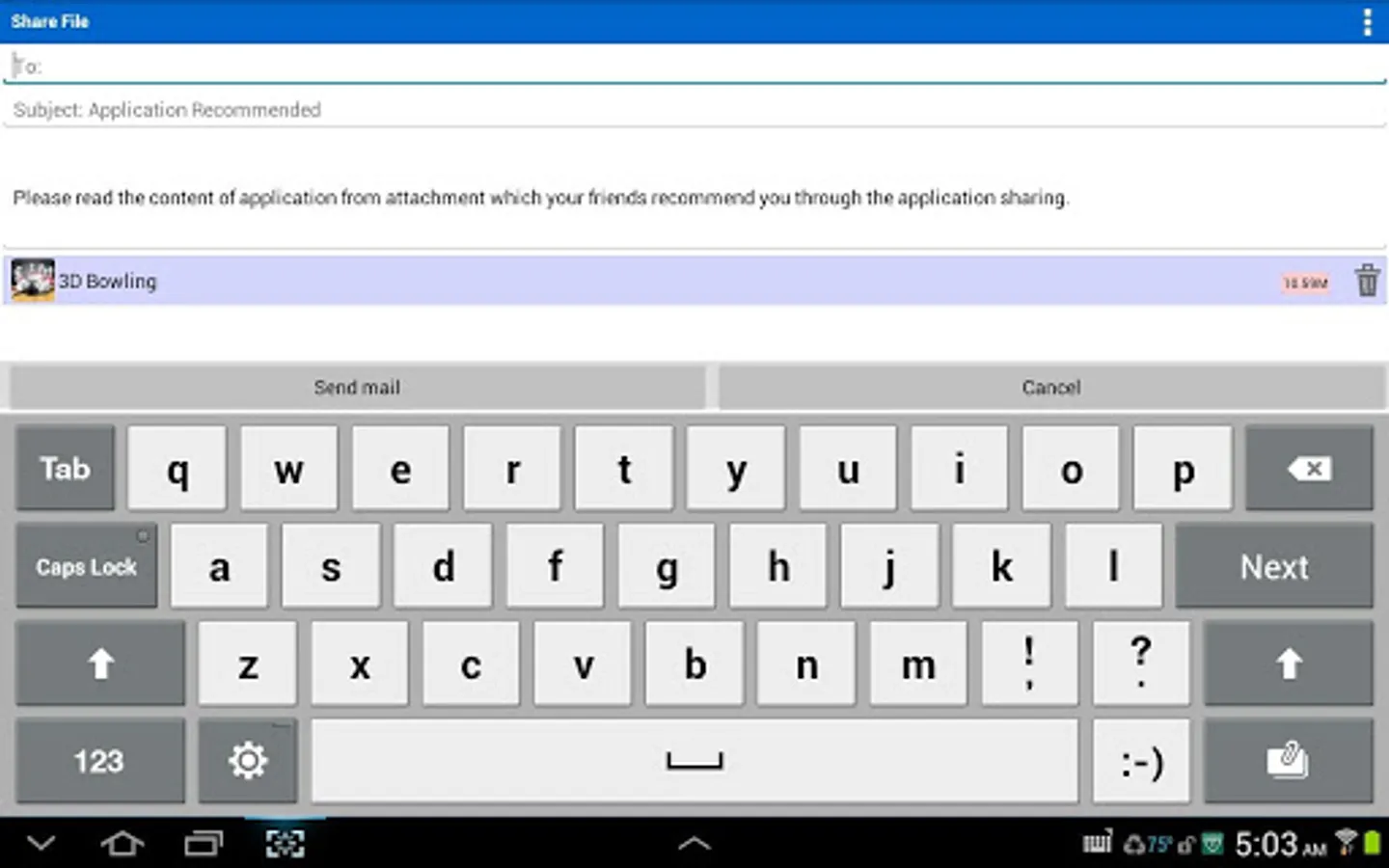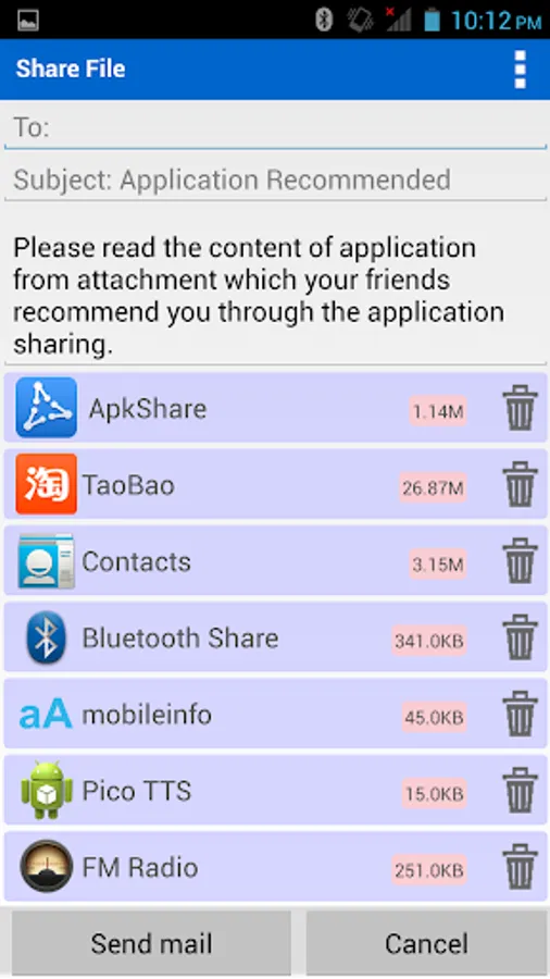 *Documents share: You can send the App to your friends by e-mail, Bluetooth, etc. Sending email through GMAIL, the maximum attachment can be 25M. It is therefore suggested that you had better use it in a good network environment.