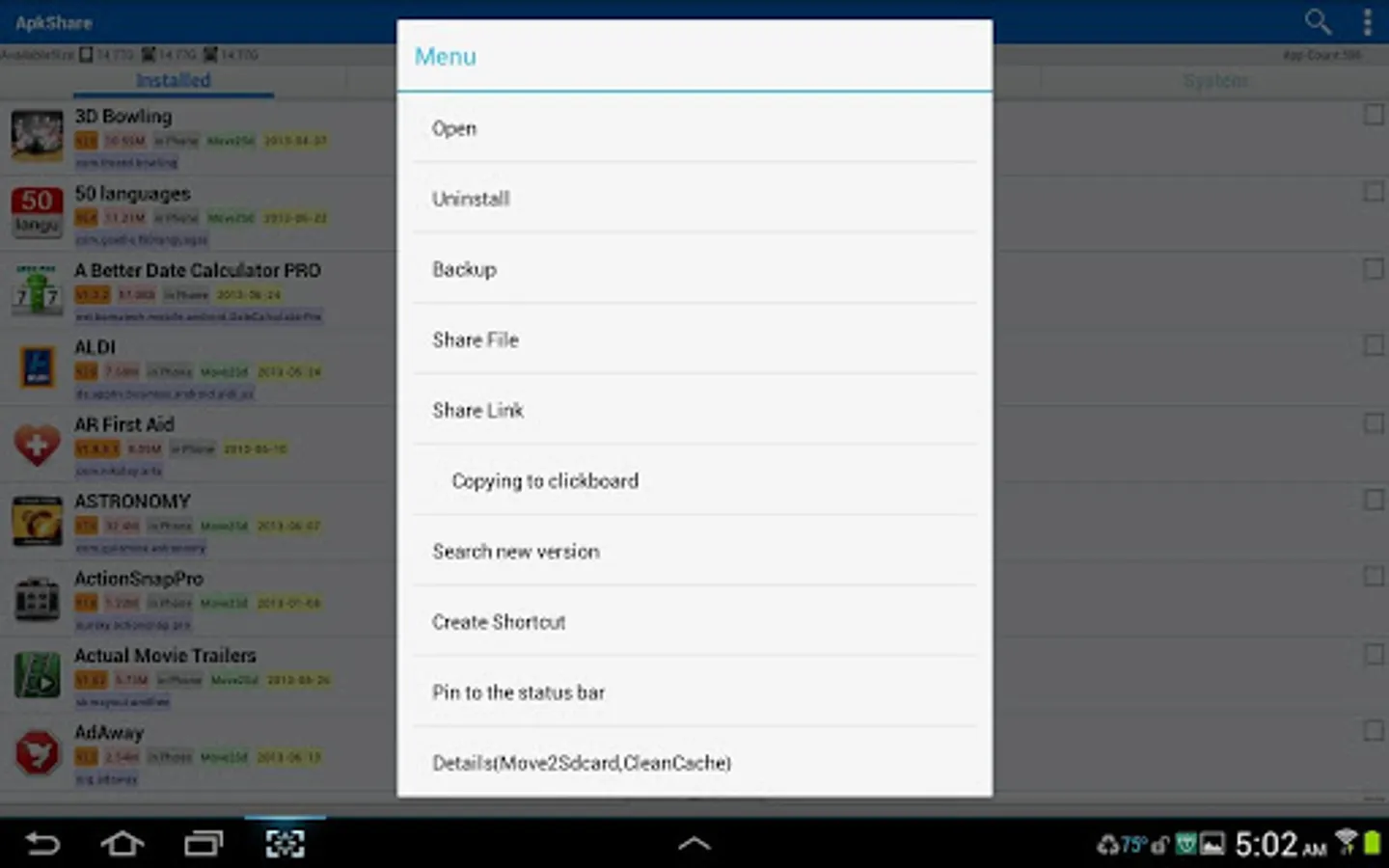 * Support App installation, uninstall, backup, sharing and setting up the shortcut,