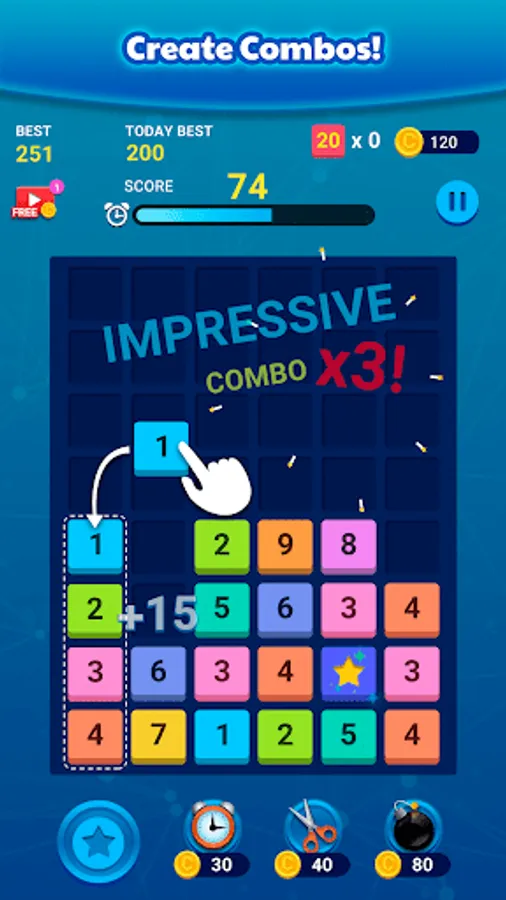 3. Get creative, tap, drag and drop the number bock you want to merge in the different places to obtain higher numbers