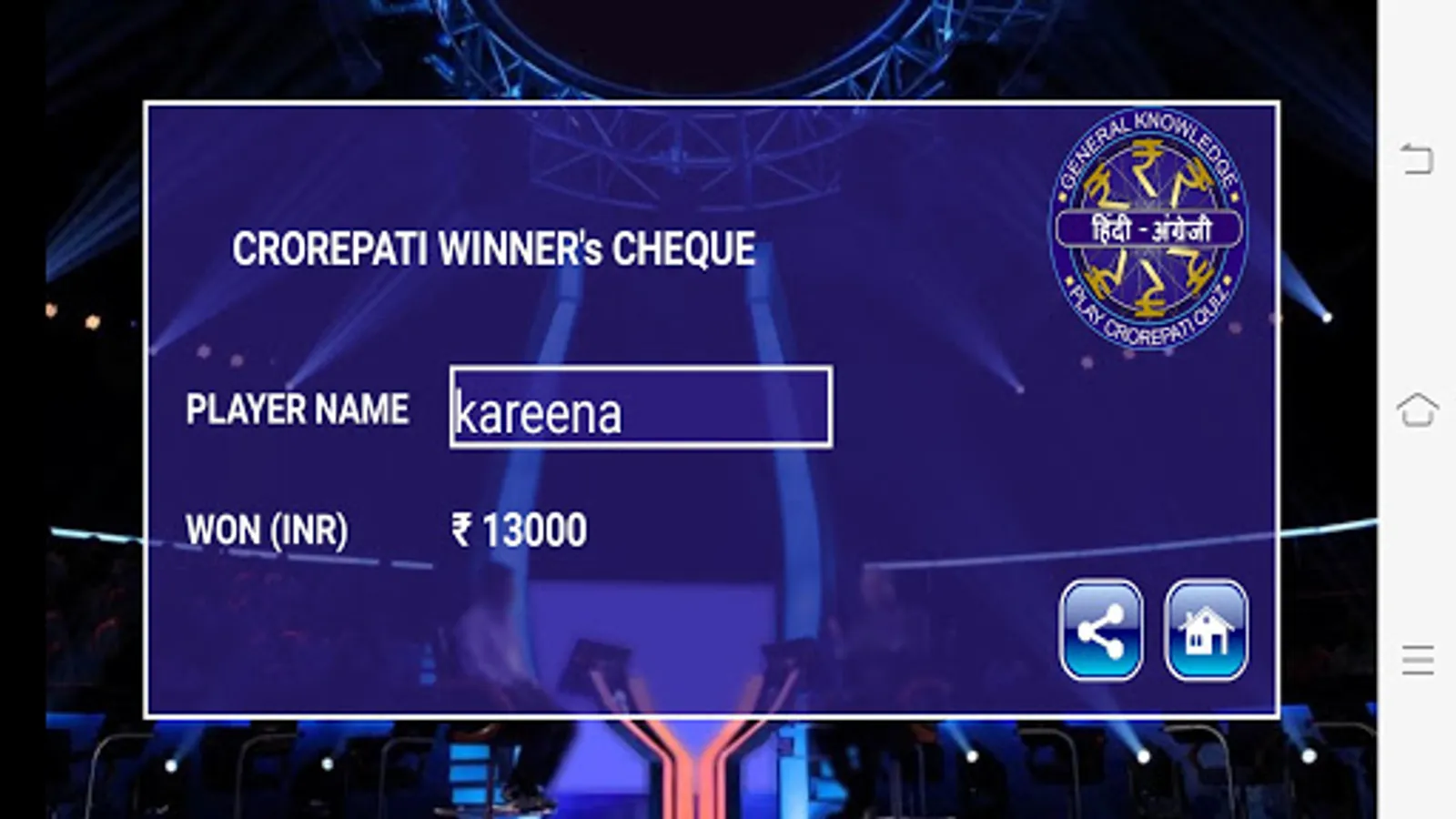 This game does not represent any official tv channel & we do not provide any real cash or cheque through this game. Kbc is a simple Quiz type game only made for purpose of improve general knowledge of our users. Please send us an email if you have any dispute.