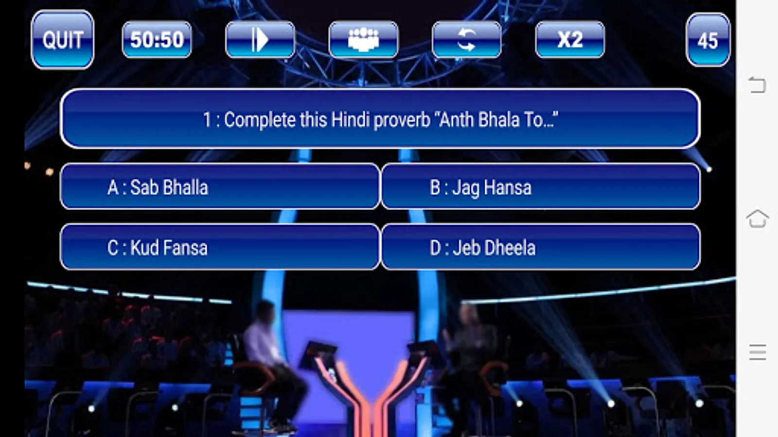 This Kbc game is totally for entertainment & improving knowledge. If you don't know answer then don't worry. We will give you correct answer. So you can continuously improve your knowledge. Kbc play alone - This kbc in hindi & english is come with new graphics & designs. Play Kbc now & be ready for upcoming new season and also earn general knowledge & current affairs.
