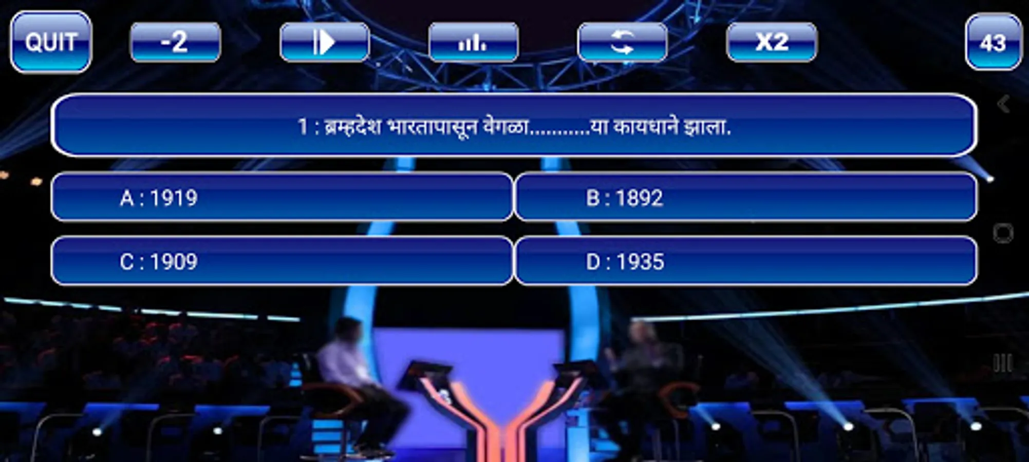 Play kbc game in your native language marathi. If you don't know answer then don't worry keep playing game we will help you & be rich in general knowledge(GK). This Kbc quiz is also useful for MPSC, General Knowledge Quiz In Marathi, Marathi Gk, Maharastra GK Quiz & also for all Maharatra Exams like TET, State Service, ASST, etc...