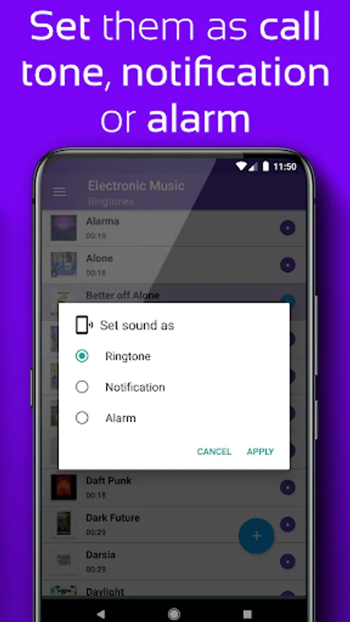 This application contains a compilation of the best electronic hits ringtone for Android phones. All the sounds and songs have been personally selected so that you can download the best collection of electronic ring tones for the phone to configure them as a ringtone, alarm tone, message tone or notification tone.