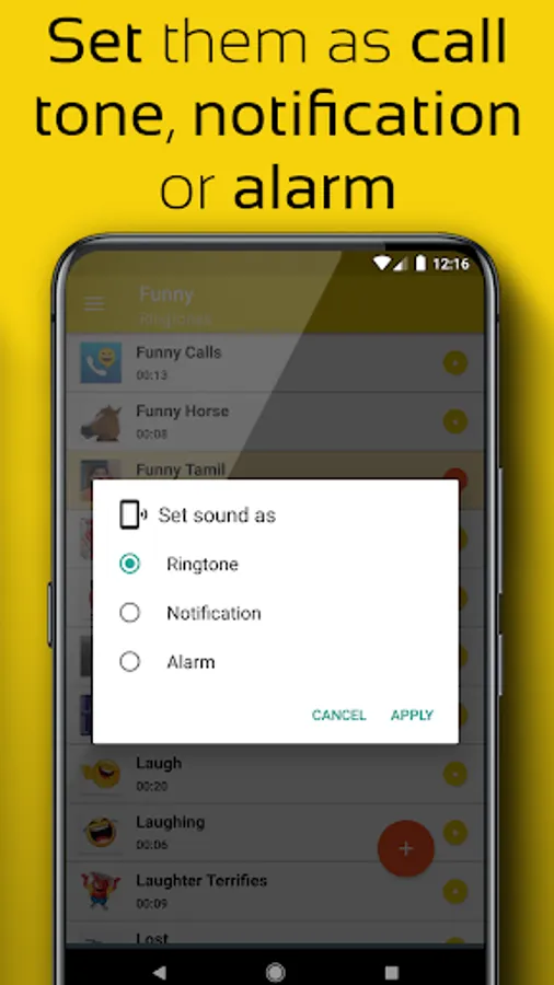 This app contains a compilation of the best funny ringtones for Android phonesfor free. All sounds and songs have been personally selected so you can download the best collection of super funny ringtones for the phone and set as a ringtone, alarm tone, message tone or short notification tone.
