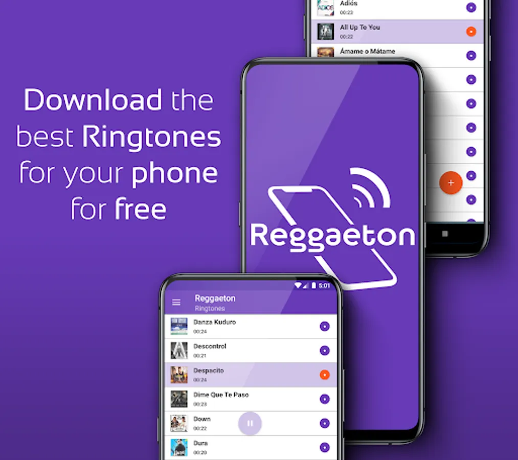 In this free reggaeton music ringtones app, you will download the best of top hit songs in 2020 in the voices of the singers: Daddy Yankee, Ozuna, Don Omar, Nicky Jam, Arcangel, Faruko, J. Alvarez, Maluma, Ñejo among others. With this Reggeaton Ringtones Downloader, you can get all reggeaton songs for your android phone for free and set them as a text message ringtone, notification sounds, WhatsApp ringtone, alarm sound or ringing tone.