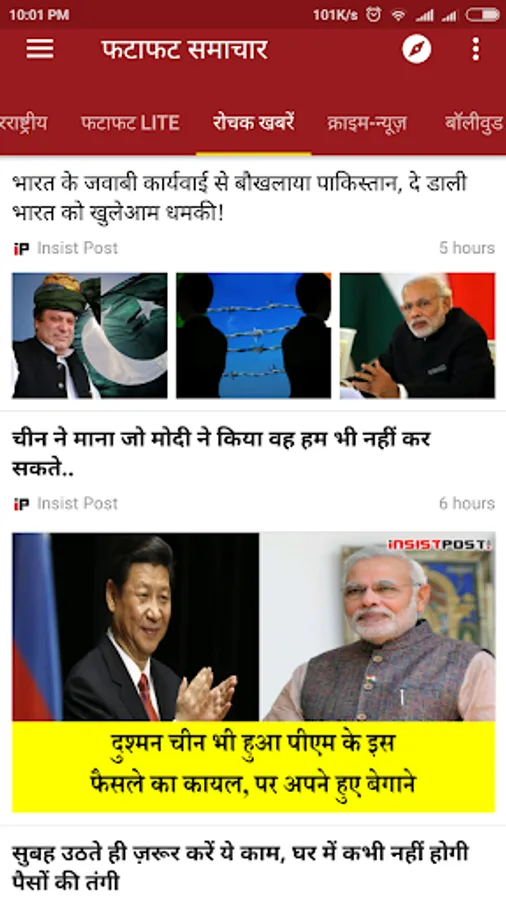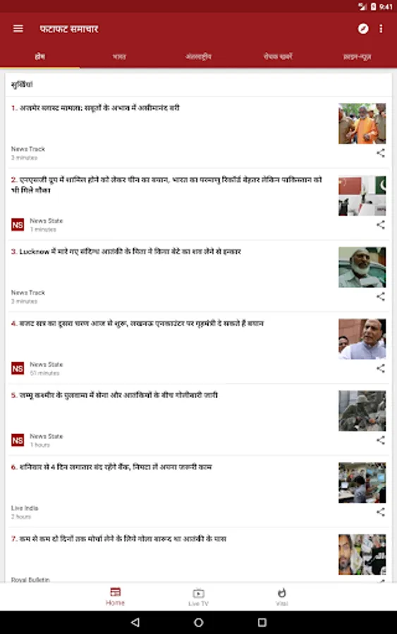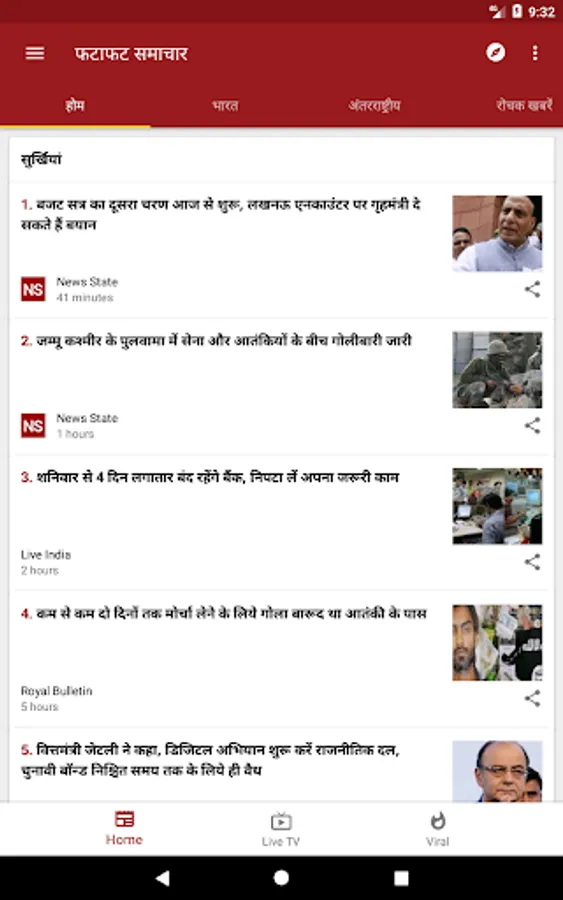 Read latest Fatafat Hindi News from different Hindi Newspaper and News Channels on your android phone. The smart algorithm of फटाफट समाचार App bring latest & live news from many newspapers & channels. The smart algorithm fetches only the Live Trending News based upon your behavior. Read offline India news, best android application for free download.