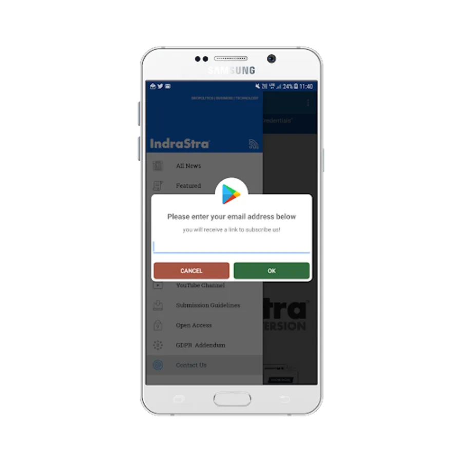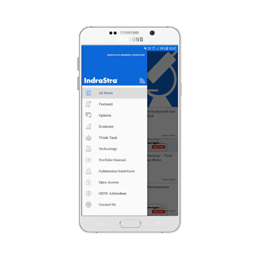 IndraStra App for Android is loaded with the latest issues of IndraStra.com covering a wide spectrum of geopolitics, business, and technology.