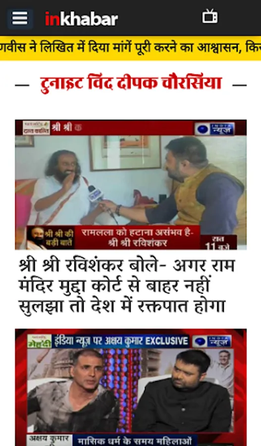 InKhabar, online portal of leading Hindi News Channel India News, brings Daily News, News Headlines, Current Affairs, Top Stories of Politics, Business, Sports, Cricket, Football, Hockey, Tennis, Entertainment, Cinema, Bollywood, Hollywood, World News, Live News, Lifestyle & Interesting News.