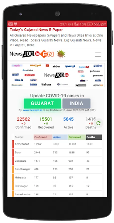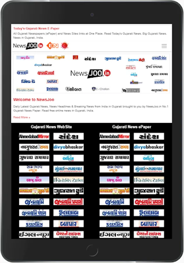 NewsJoo - A list of Gujarati ePaper (newspapers) and Gujarati news websites links at one place app. Read free online daily latest Gujarati newspapers like Gujarat Samachar ePaper, Divya Bhaskar e-paper, Sandesh, Akila, Sanj Samachar, NavGujarat Samay, and NAYA Padkar newspaper & websites.