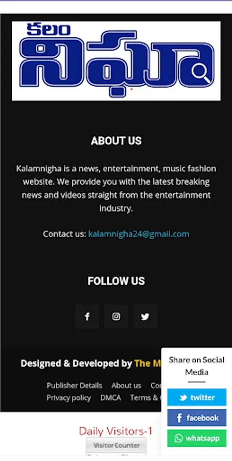 Kalam Nigha application is news application that delivers latest news minute to minute in Telugu language. In this application you can read news in various categories like Political, Technology, Social and movie updates.