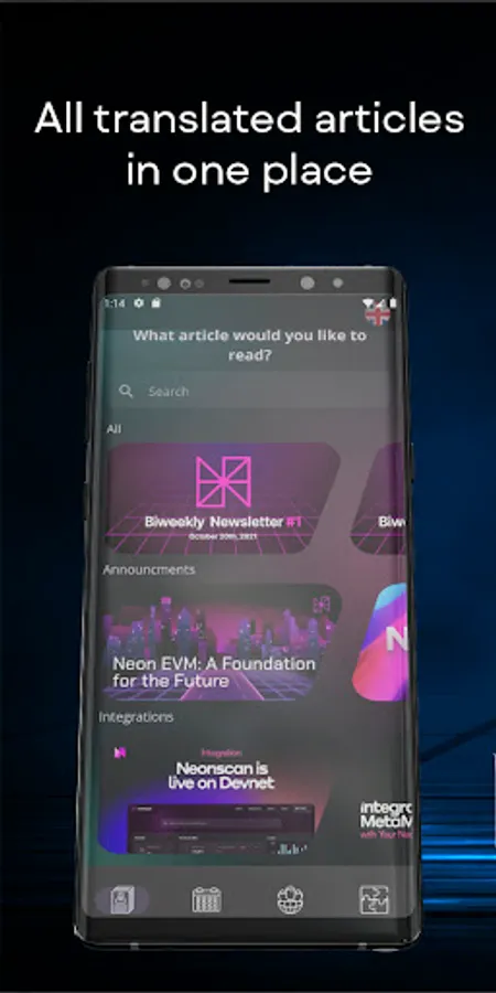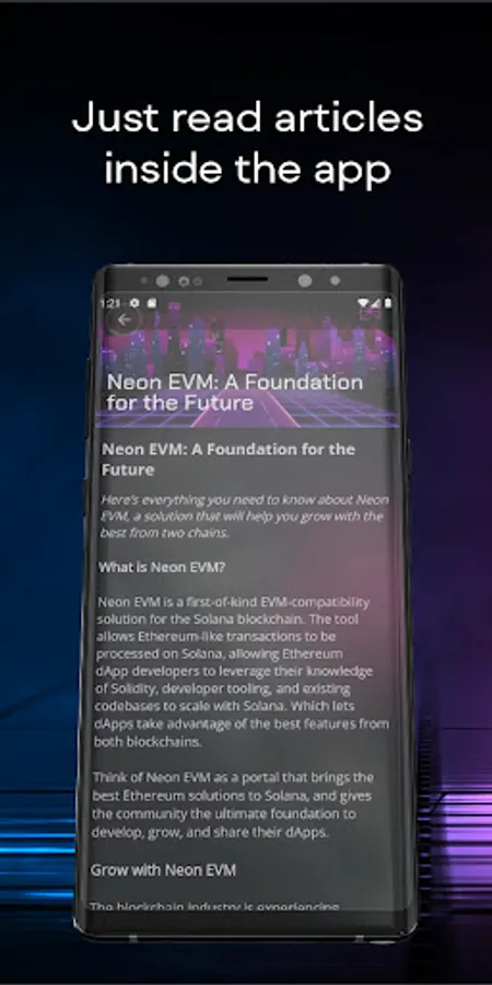 The Neonors application was created for the Neon Labs project. What does Neoe Labs include? Neon Labs is a project building an EVM on Solana. Their mission is to help dApp developers use Ethereum tools to scale and gain access to Solana. In the Neoners application itself, all the articles of the project are collected and the function of translating into different languages is added, which is very convenient for users. Added notifications about upcoming AMA, games, quizzes, announcements, dev announcements, it's very convenient. For example, there is some kind of game ahead, but the person didn’t know or forgot, so the application will remind him, send a notification to his phone and he definitely won’t miss it. Guys, download and enjoy!