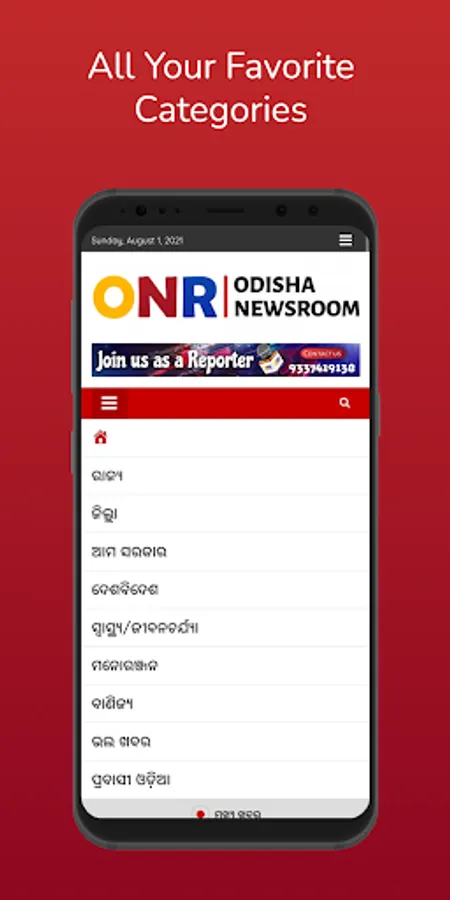 ONR is a platform where viewers can get day-to-day news and events of Odisha. Viewers can also get all updates about the development activities of the state. The main motto of ONR is to compile and cater day-to-day news/events ranging from micro-level to state level for the viewers of Odisha as well as the Odia community residing outside of the state.