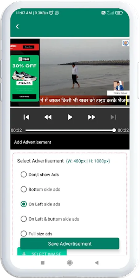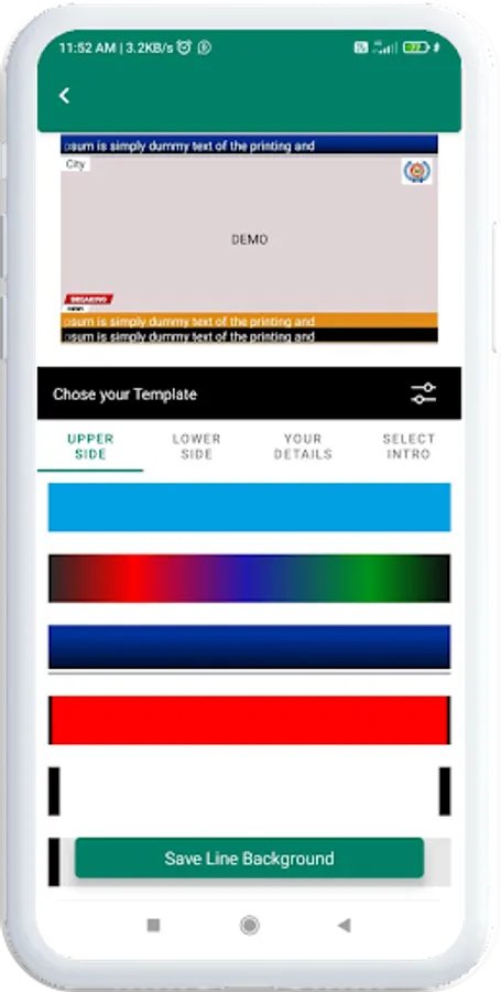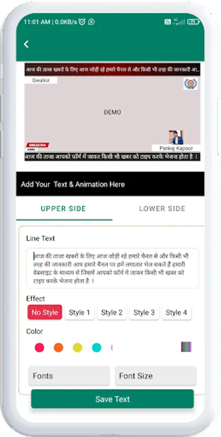 It has multiple option to manage margins from bottom and top as well, User has to select video / photos and a color theme, Once you type your breaking news, Your Video is ready to share.