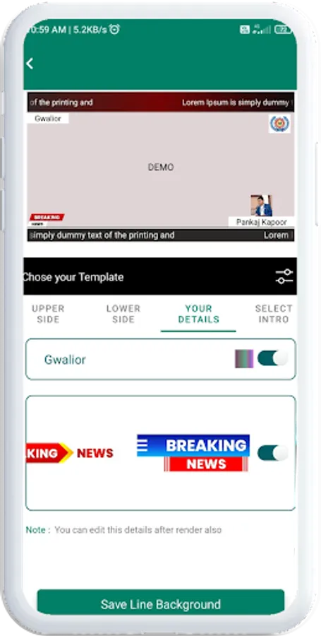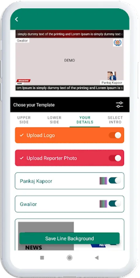 News Video Maker has 100+ designs and ready color combination, Special icons like Breaking News, Exclusive News, LIVE and similar that can show along with Logo, Reporter Photo, Reporter Name, City Name, Date.