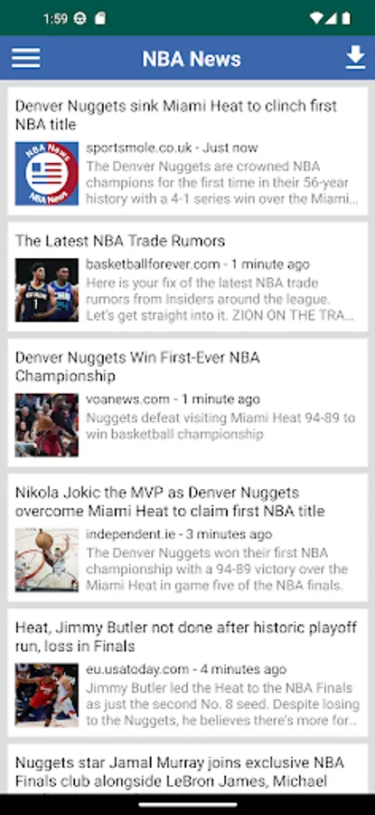 NBA Latest News is the world's most comprehensive NBA news aggregator app, bringing you the latest basketball headlines from the best NBA sites and other key national and regional sports sources. From the Boston Celtics to the Chicago Bulls, the Atlantic to the Southwest Division, the NBA Draft & NBA Playoffs to the NBA Finals, we've got it covered - breaking news, scores, trades, and highlights from each site are brought to you automatically and continuously 24/7, within around 10 minutes of publication. Stay updated with the latest news about your favorite NBA teams, star players, game analysis, and more. N.B. Relevance is automatically assessed, so some headlines not qualifying as National Basketball Association news might appear - please feel free to contact us regarding any persistent issues.