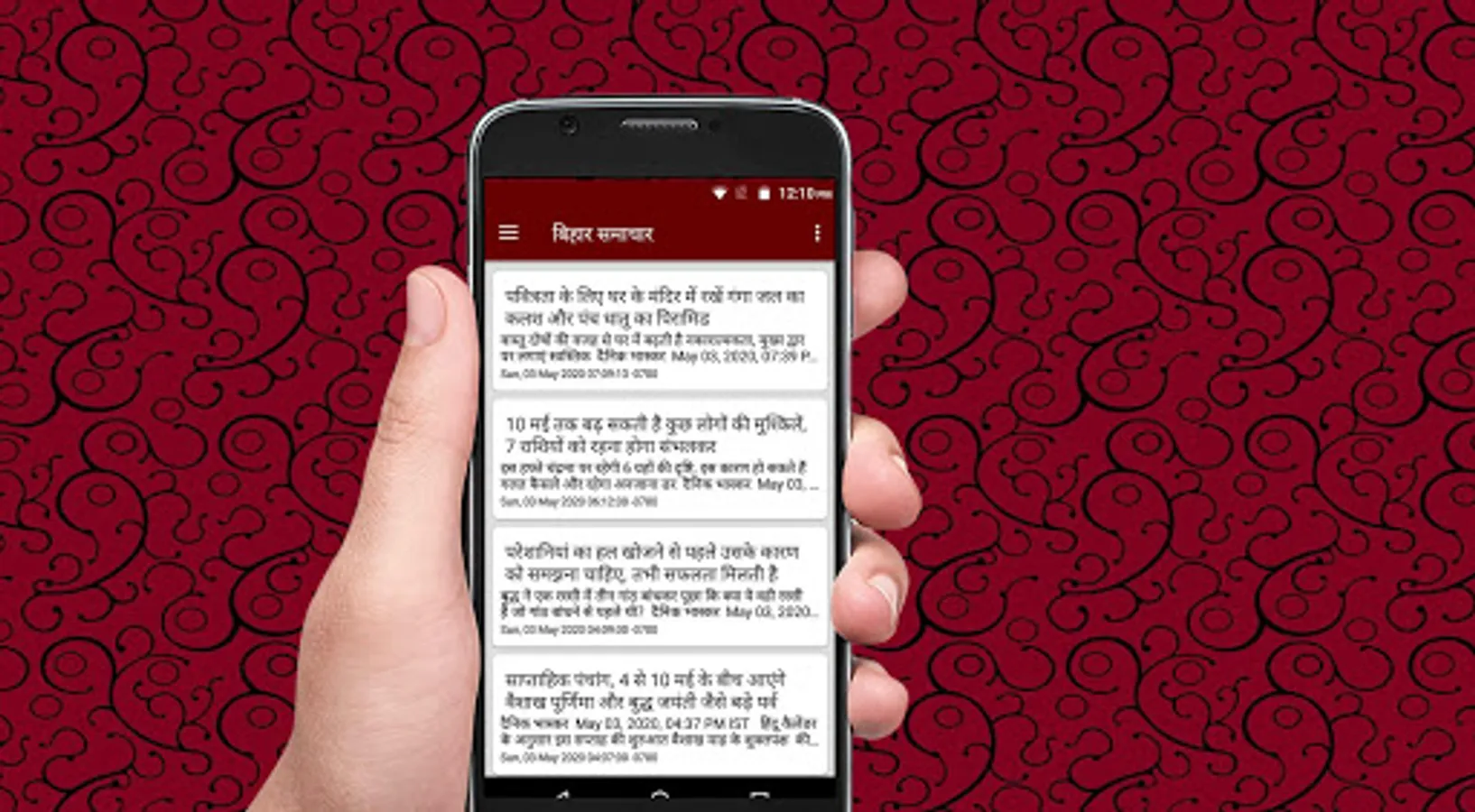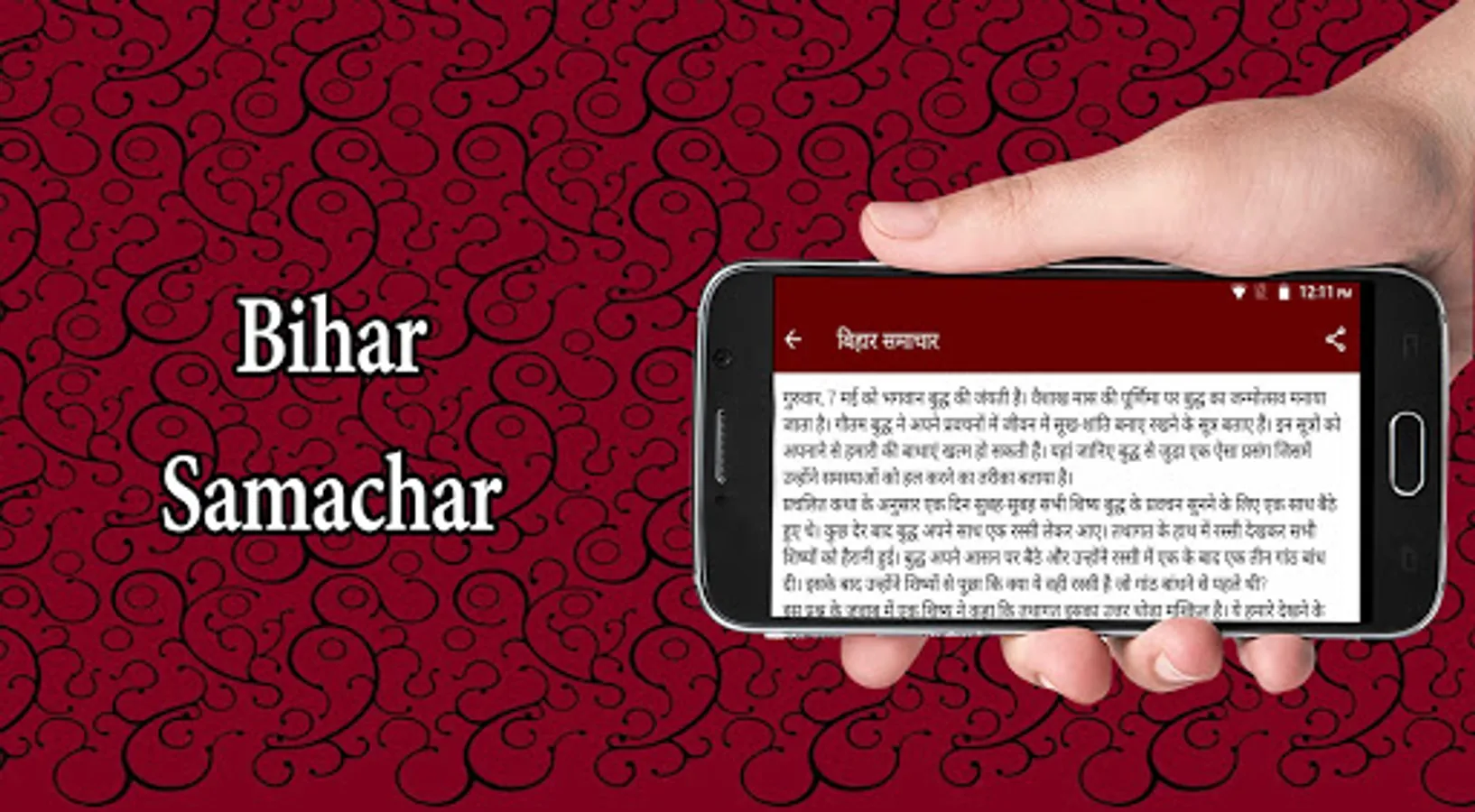 Bihar Hindi News is an Android application to get the latest and breaking news of Bihar in Hindi from your favourite newspapers & TV Channels websites. Explore Bihar's (Patna, Muzaffarpur, Bhagalpur, Bhojpur and major cities of Bihar) happening topics like, culture, business, politics, sports & more from Dainik Bhaskar.