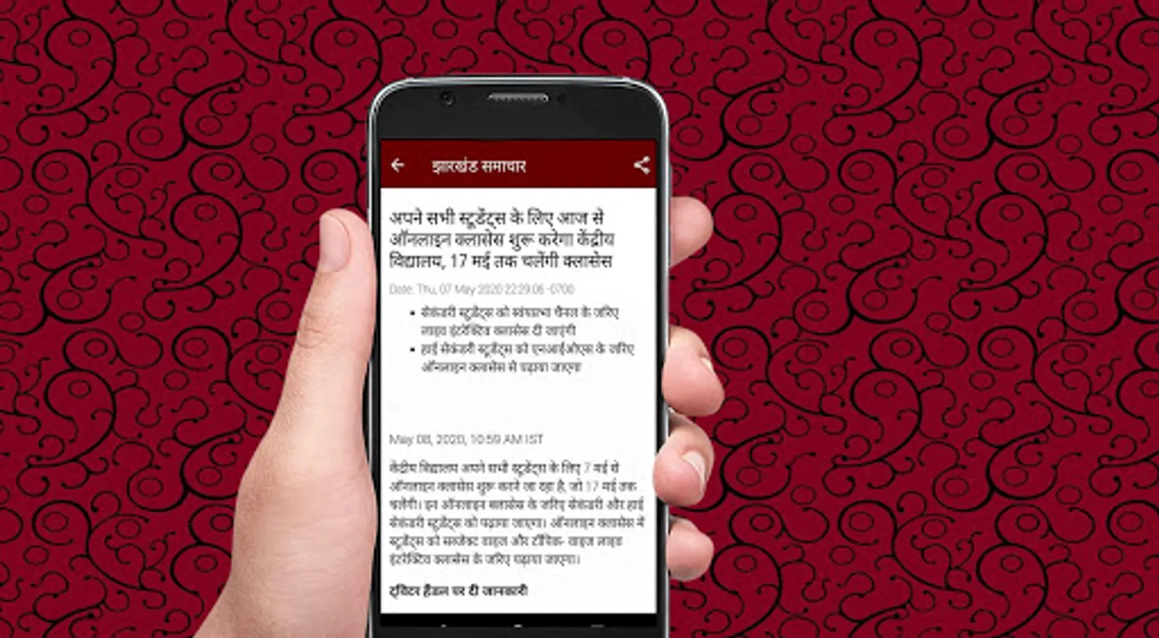 Jharkhand Hindi News is an Android application to get the latest and breaking news of Jharkhand in Hindi from your favorite newspapers & TV Channels websites. Explore Jharkhand happening topics like, culture, business, politics, sports & more from Jharkhand Dainik Bhaskar.