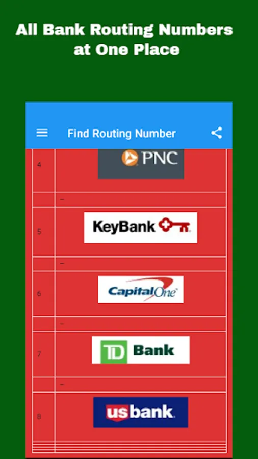1- App only purpose to help for routing number at one place, so that users may get access to content quickly and easily. please double check routing number before transfer. we are not responsible for any error.