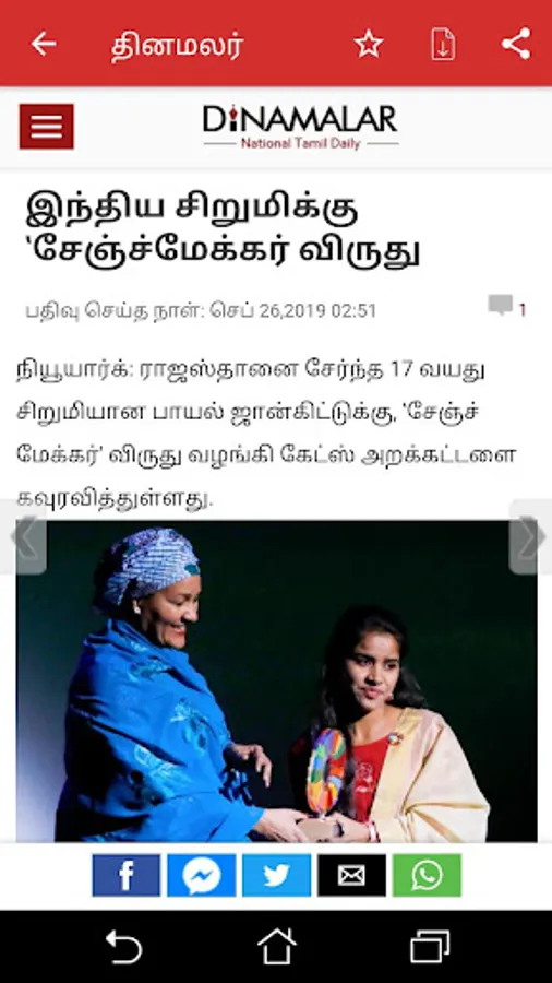 Share news over Whatsapp, Facebook or any other app you have installed.