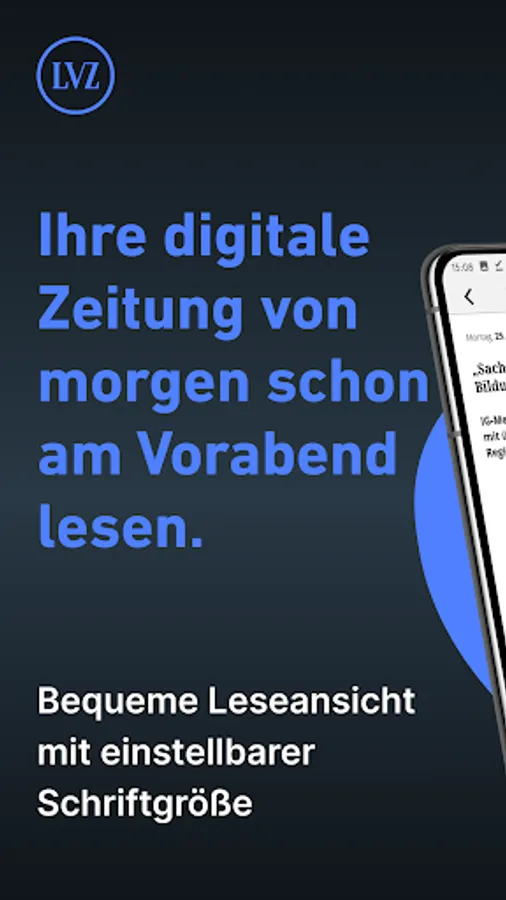 The E-Paper App of the LVZ: Read your favorite topics. Anytime. All over. Easily read your messages on the smartphone and swipe through the articles in your digital newspaper.