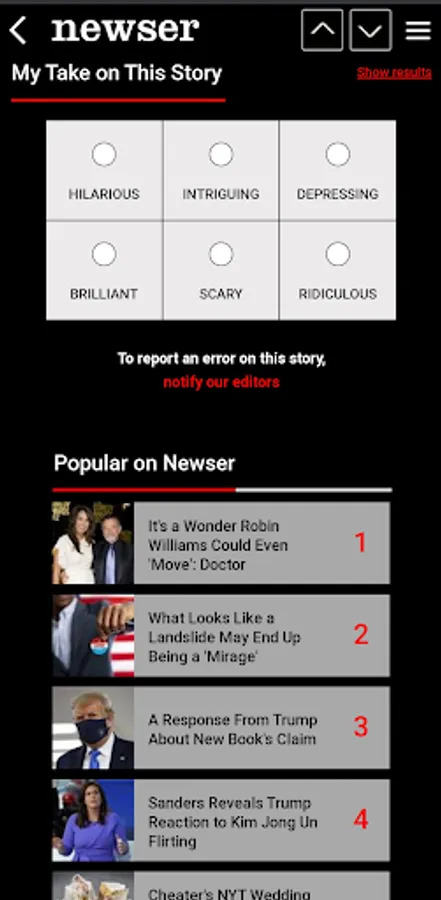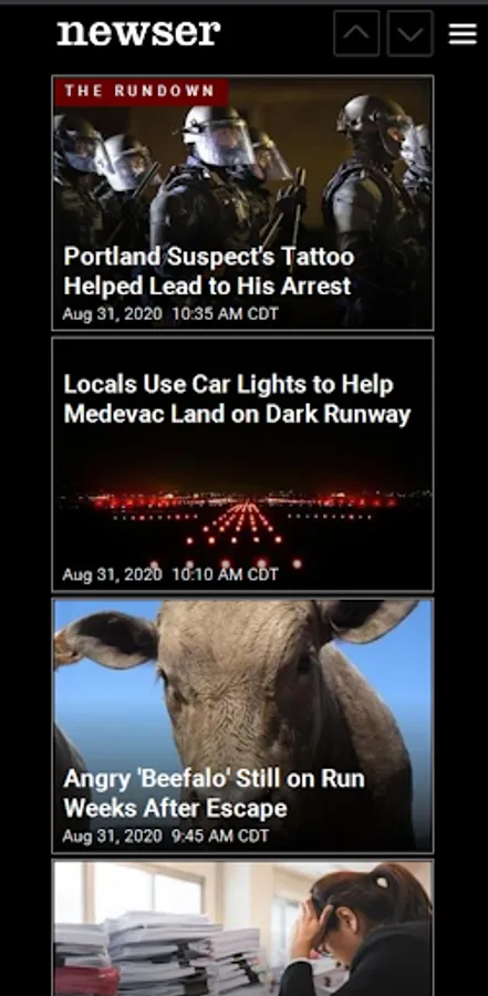 Newser's editors present the day’s most essential, entertaining, and quirky news in stories that are typically two paragraphs long, giving you a quick way to know what’s going on in the world, especially on the go. Our sharply written stories pack in only the most interesting details—none of the boring stuff—and we're pretty to look at, too. Our signature grid, reformatted for Android phones, lets eye-catching photos and short and snappy headlines do the talking, providing a vivid snapshot of the day's news.