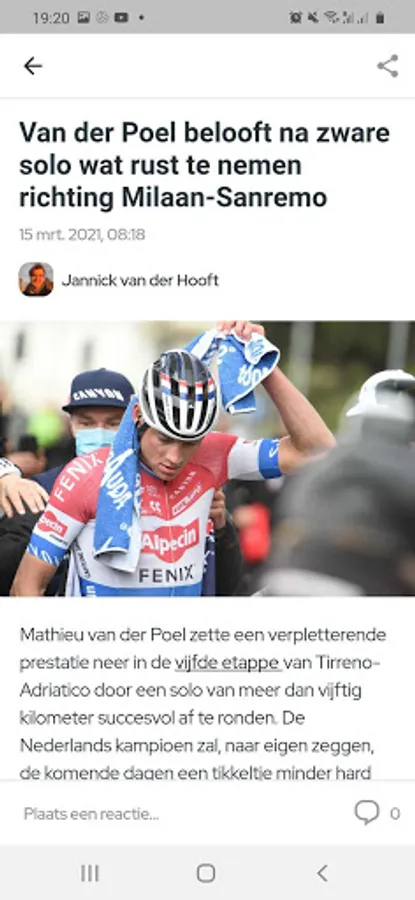 More information and background on cycling. Latest news about the big teams, famous Dutch and Belgians and other prominent figures in cycling. Obviously also an eye for the big tours such as the Tour de France, Giro d'Italia and the Vuelta.