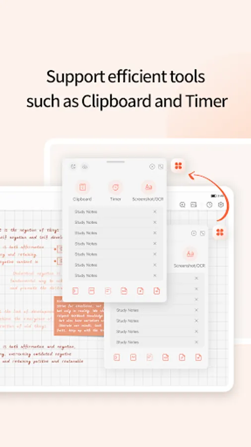 * Add a quick screenshot to the device status bar at any time and insert it into the note.
