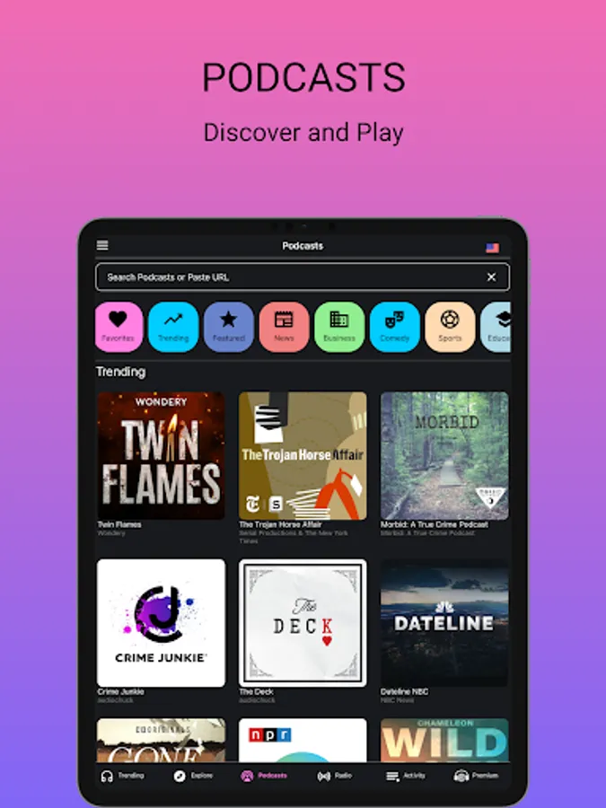 Best podcast player. Discover the best podcasts from NPR to Wondery and BBC, around the world and in any language (not just English). Feed your curiosity