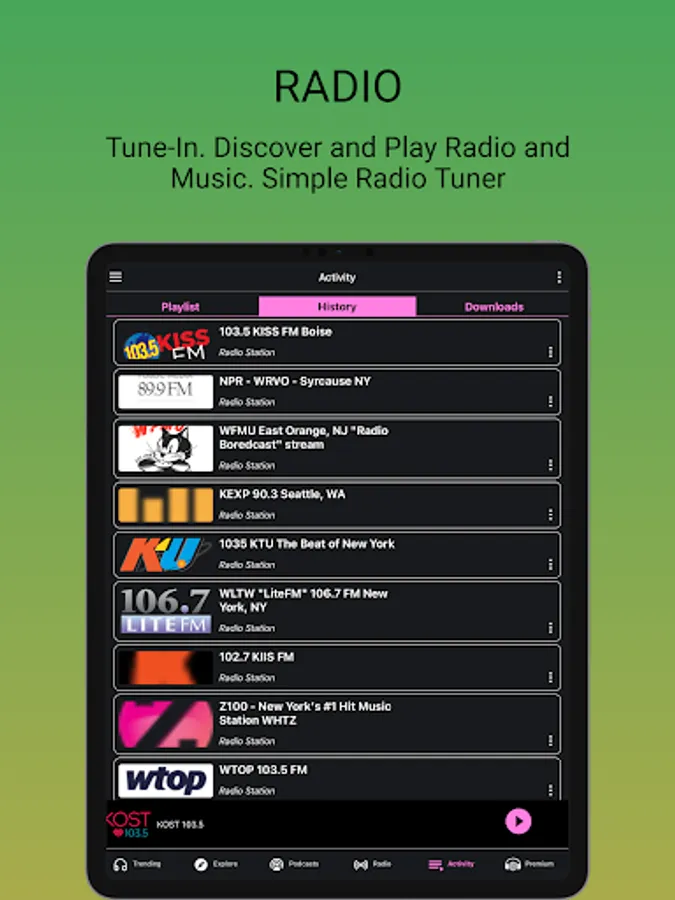 New! Tune in and tap to listen to everything anywhere. We have all the radio stations around the world. News Sports and Music.