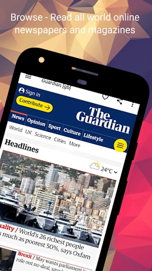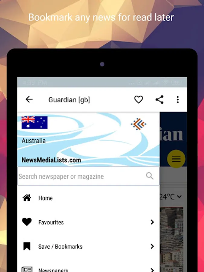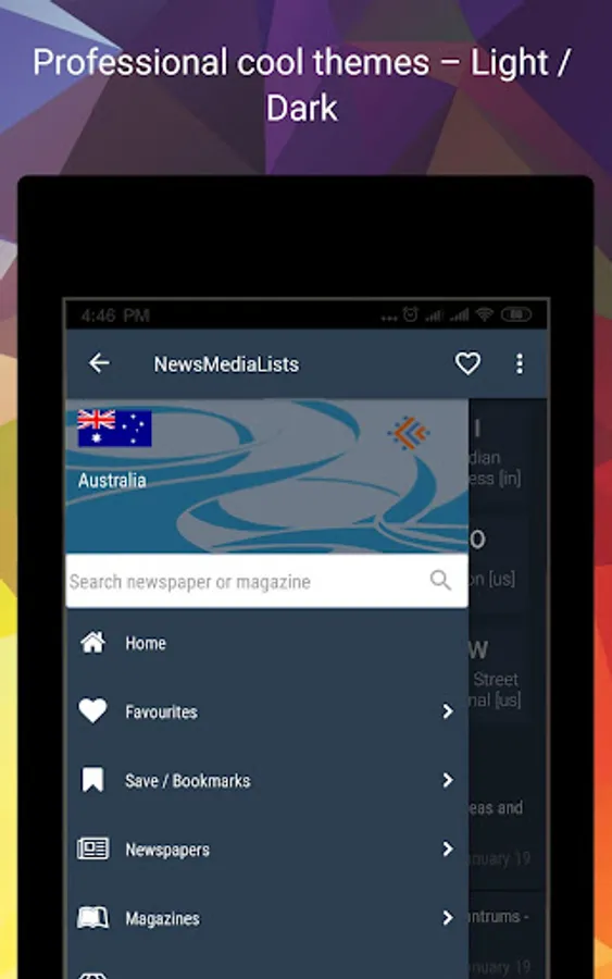 Easy to use and read thousands of local and international newspapers, magazines, news sites, news agencies and websites from your country and all around the world. More than 250+ countries/states/categories wise 40,000+ WORLDWIDE newspapers and magazines listing.