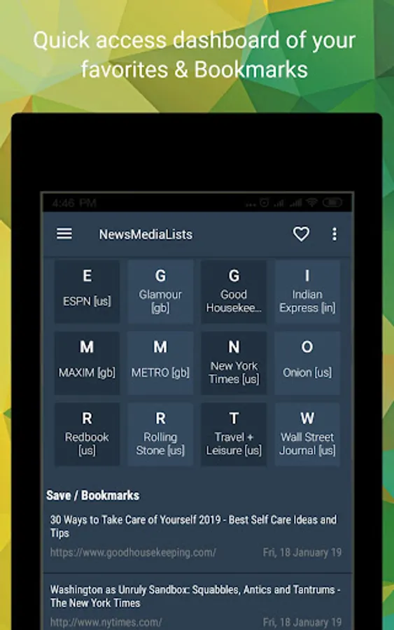 ☆ Favorites any news sites from any country/state/category list.