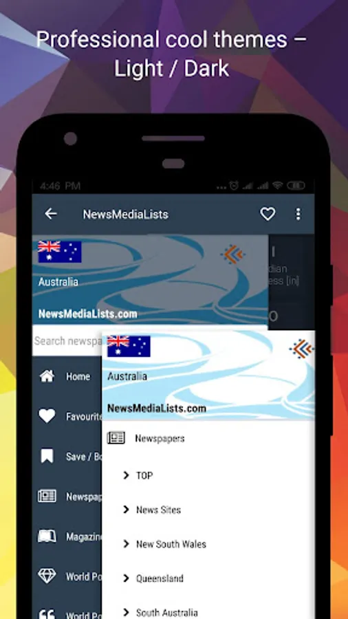 ☆ Country wise categories newspapers and magazines listing. e.g. TOP, Sports, Business, National, News Sites, English, Locations etc.