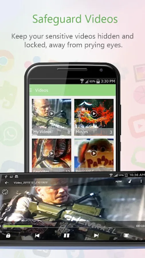 Hide and lock your precious videos with App Lock by importing them from the Gallery and your SD card. App Lock has a built-in camera and a secure browser, from where you can make or download videos and immediately secure them.