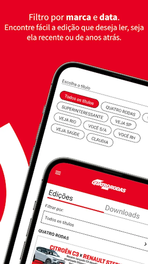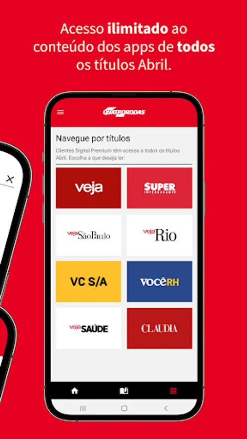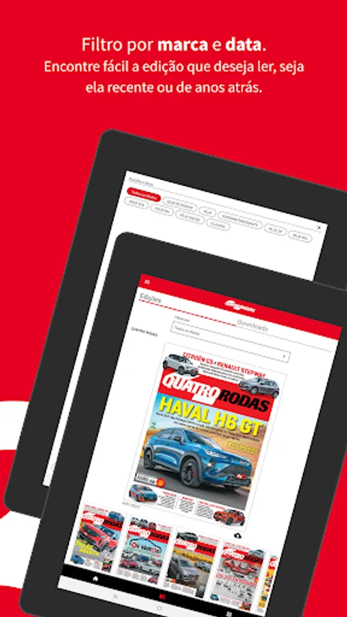 With your digital signature you can read the content on your computer, tablet and smartphone, in addition to having unlimited access to the QUATRO RODAS website and to all content made exclusively for digital.