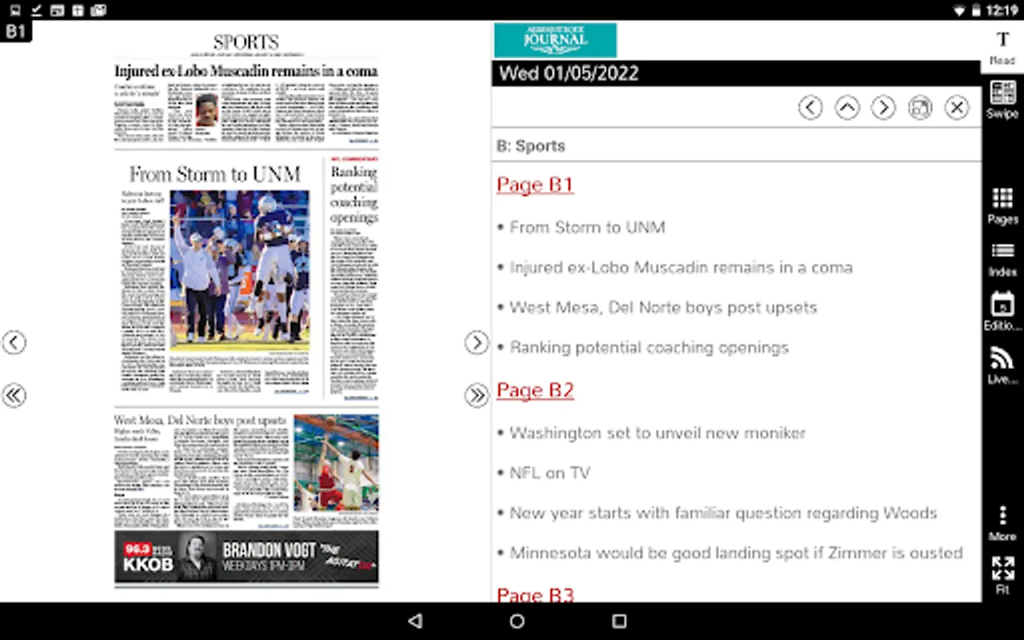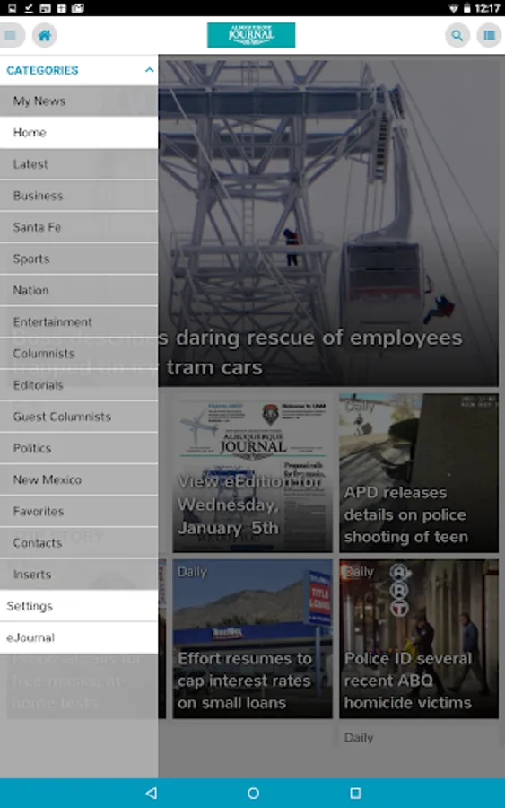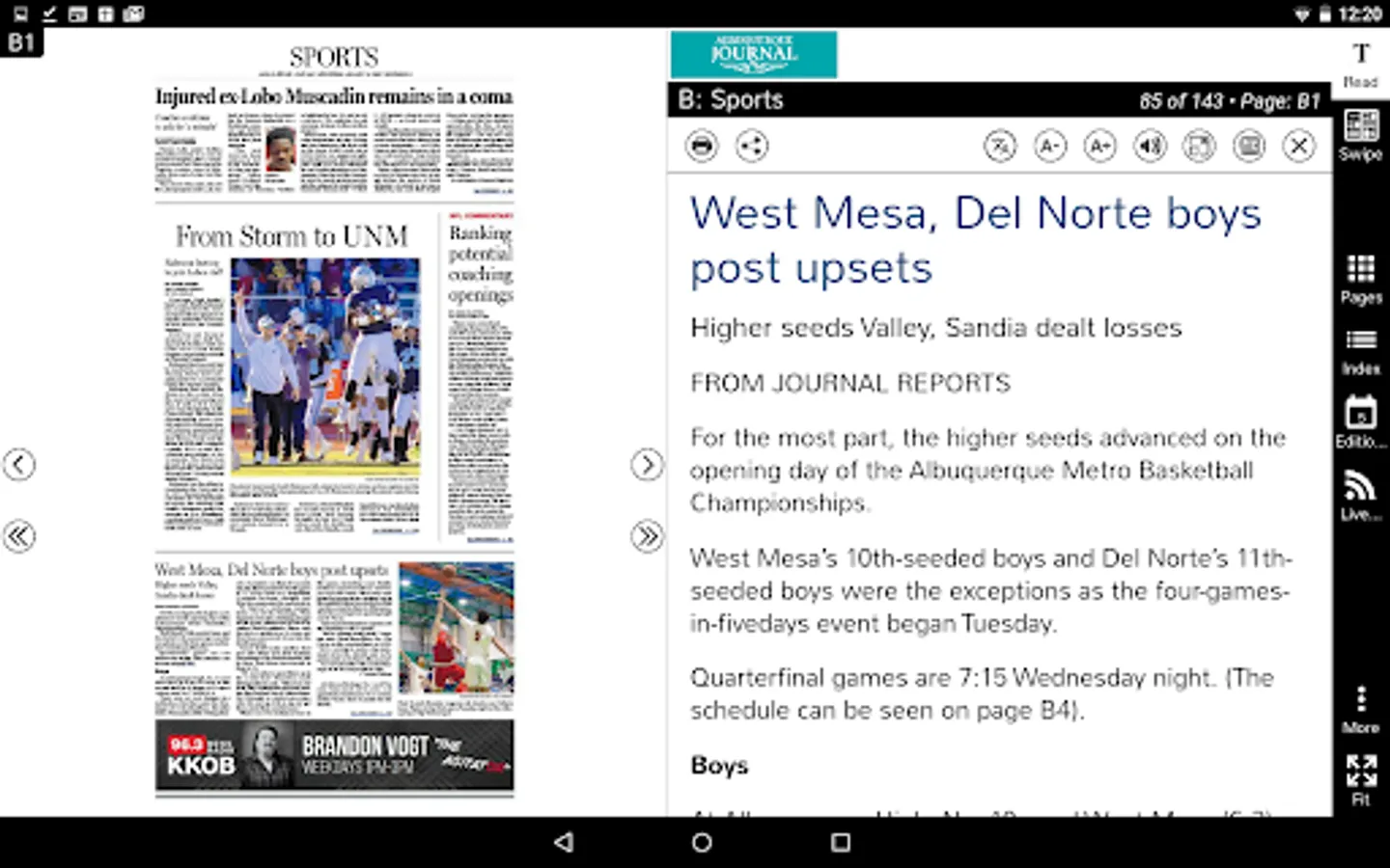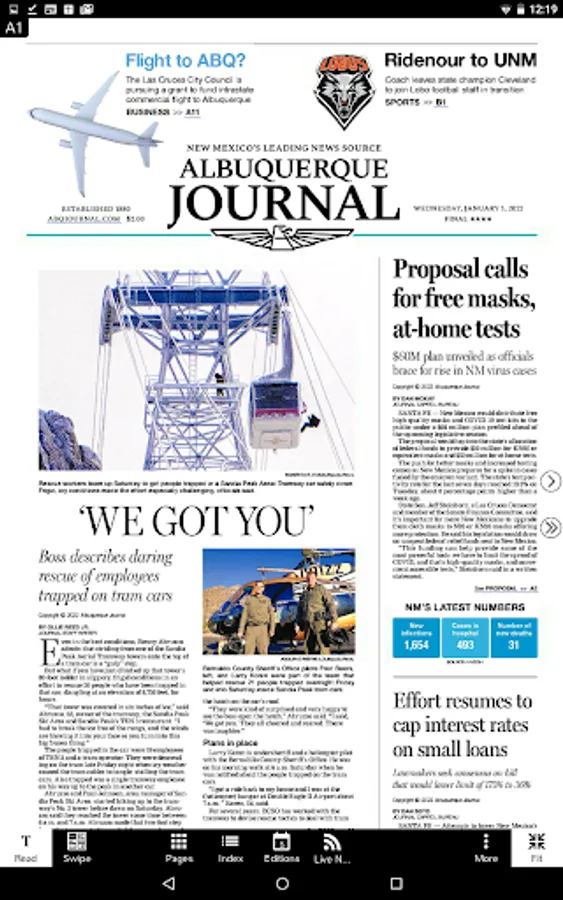 Full copy digital replica of Albuquerque Journal -- New Mexico's leading newspaper -- delivered to the Google Play Store on your Android phone or tablet. Trial editions can be downloaded by anyone for a limited time. The replica follows you wherever you and your device go. You can set it up to automatically download each day's newspaper and then view it even when not connected to the Internet.