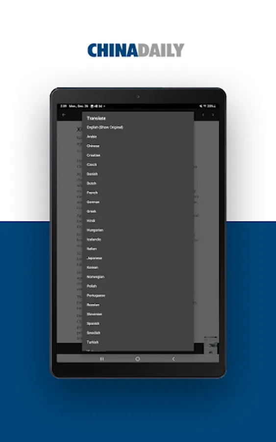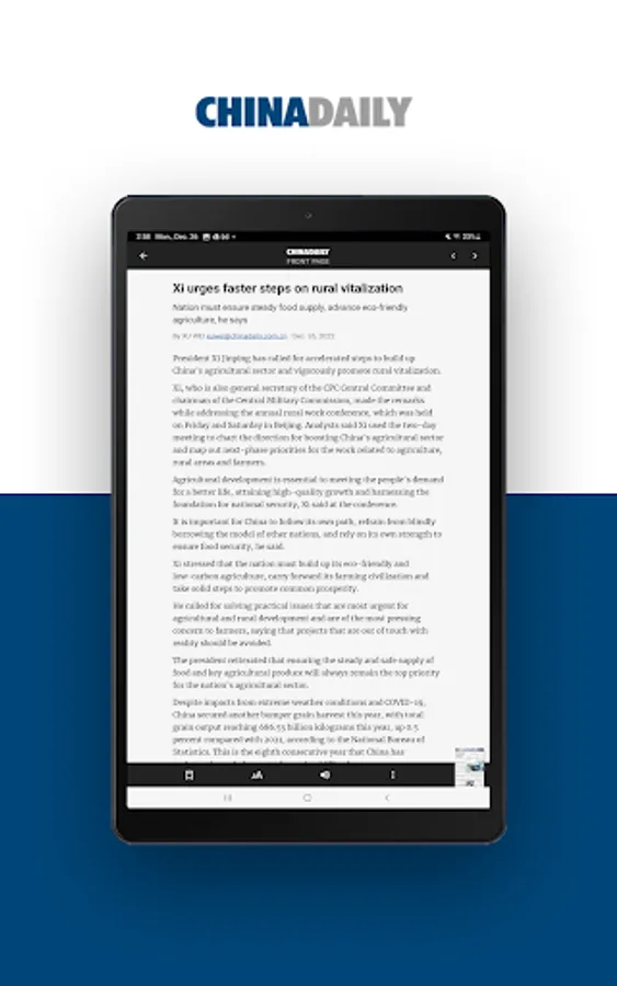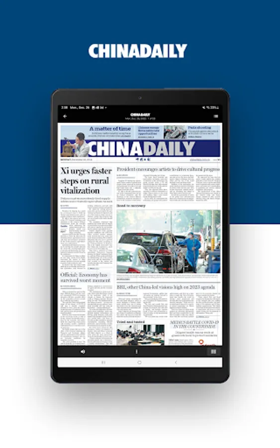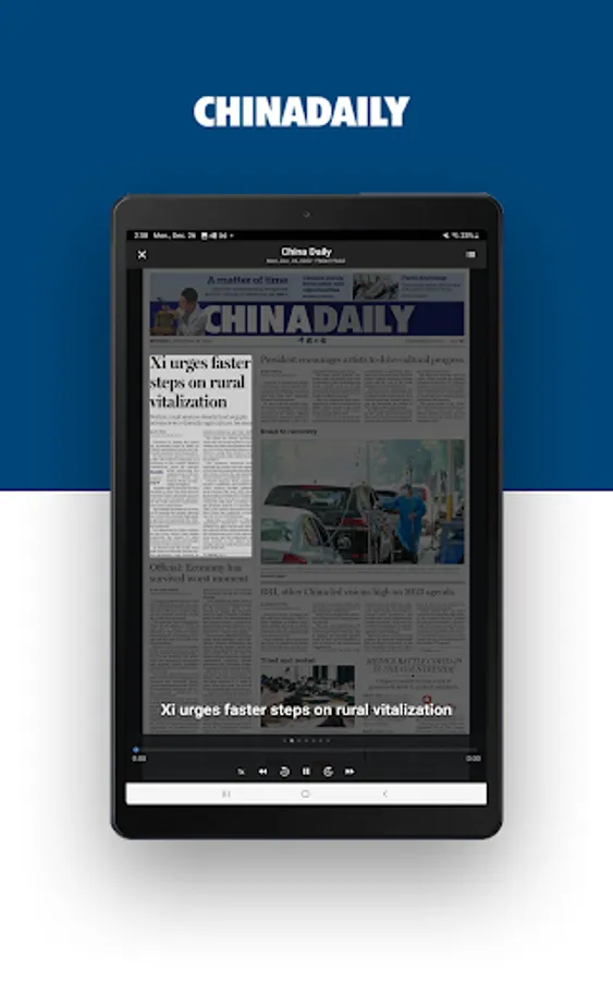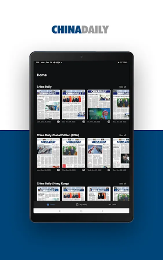 You can now have CHINA DAILY at your fingertips. The China Daily iPaper app from NewspaperDirect gives you every section of CHINA DAILY every day -- full-content digital replicas in their original layout. The app is free, and you can link your existing China Daily Smart Edition account to download the paper wherever you are. Flip pages, pan and zoom in to view any page, article or photo in stunning clarity.