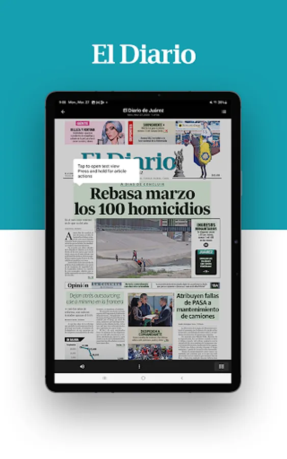 Read here the printed editions of El Diario de Juarez and El Diario de El Paso, leading information in the state of Chihuahua and southern Texas. daily edition in Spanish with the best information from the region as well as economics, sports and entertainment.