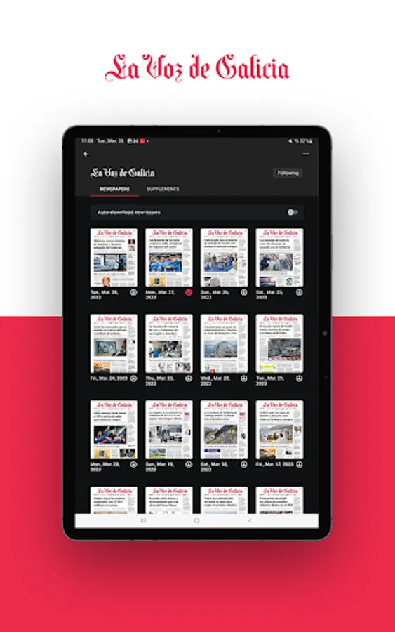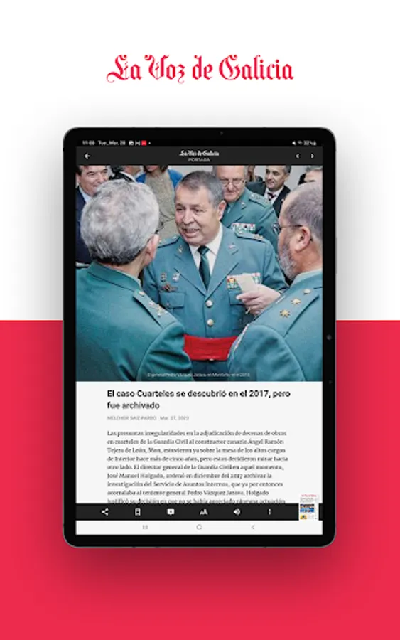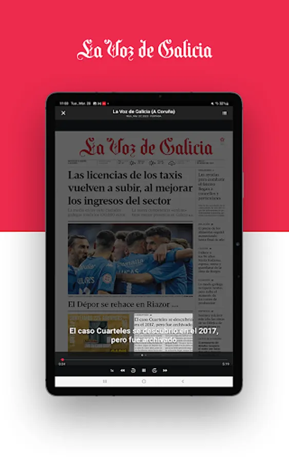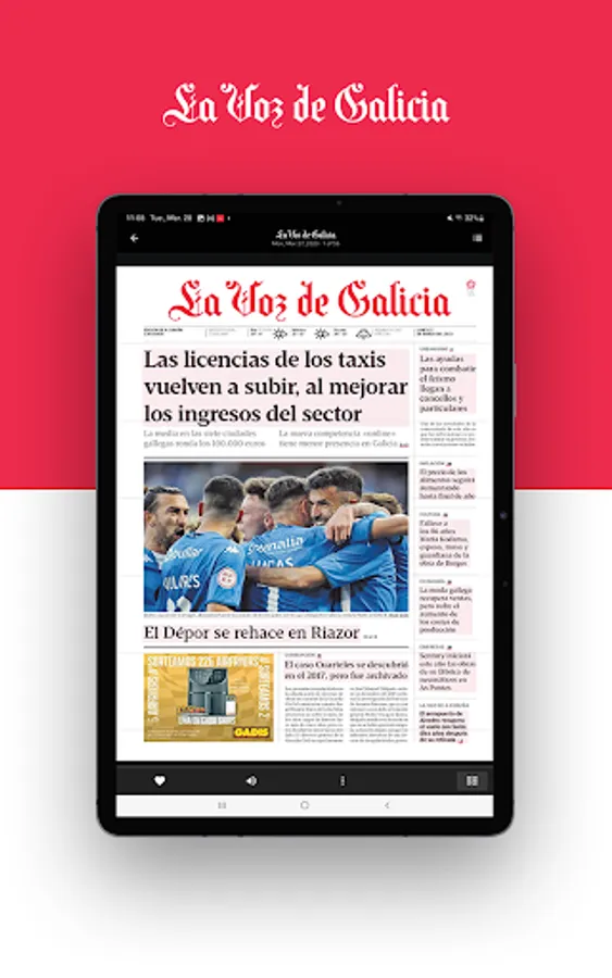 With the application of La Voz de Galicia for iPad / tablet, the daily leader of the community can enjoy the full edition of the newspaper on paper, with all its editions and supplements, to read anytime, anywhere. This application provides a streamlined experience, intuitive and very easy to use reading.