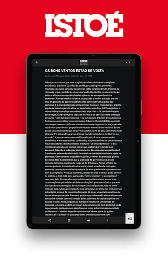 From now on, you can already have the digital version of the most independent weekly magazine in Brazil. All the quality and editorial impartiality of ISTOÉ at your fingertips.