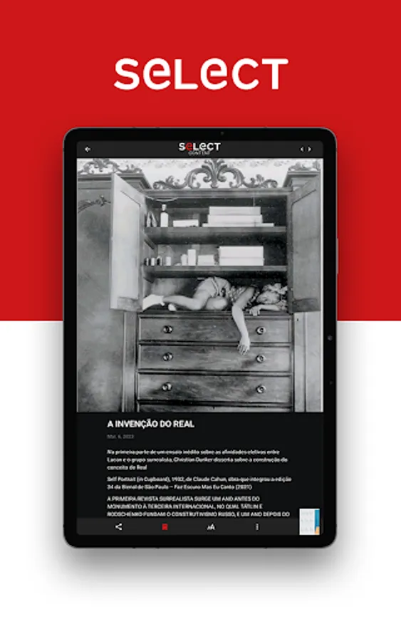 SeLecT puts an end to “more of the same”. It makes a difference and is different. On your Ipad, on your desktop, on newsstands.