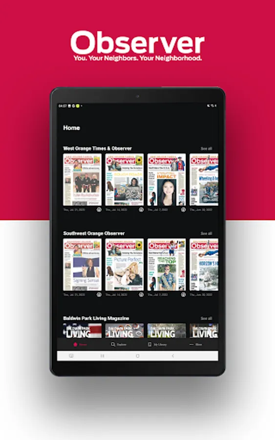 For just $5 per month or $60 per year, read the Observer’s publications as laid out in print on any of your devices and take us with you wherever you may go in our convenient e-Newspaper format.