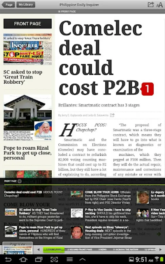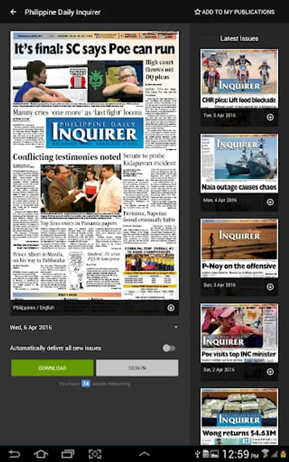 You shall be able to share content through Twitter, Facebook or email sharing and download and store previous issues for on-the-go reading. You may also have your Philippine Daily Inquirer set to auto-delivery so that it will be ready for reading on your device when you wake up.