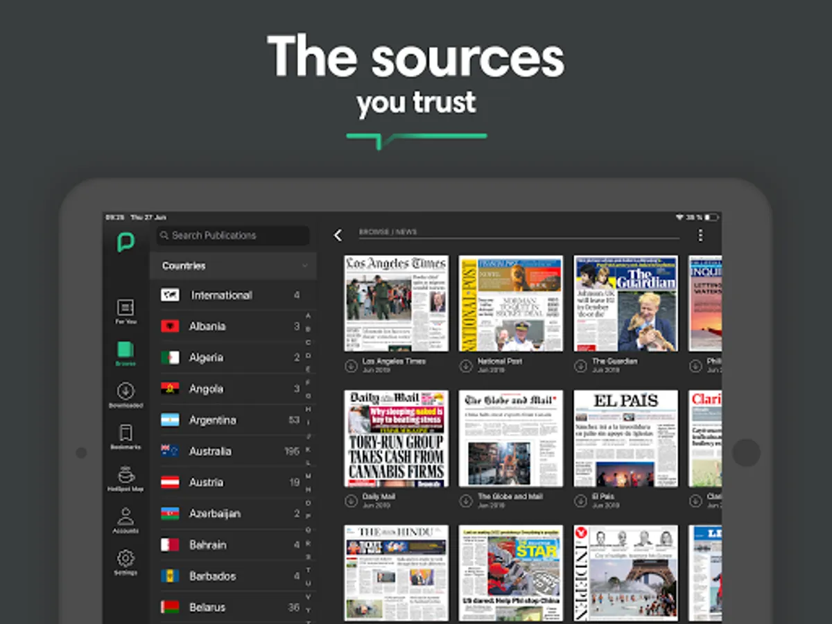 - Personalize your news feed with specific sections from publications to build your own newspaper or magazine
