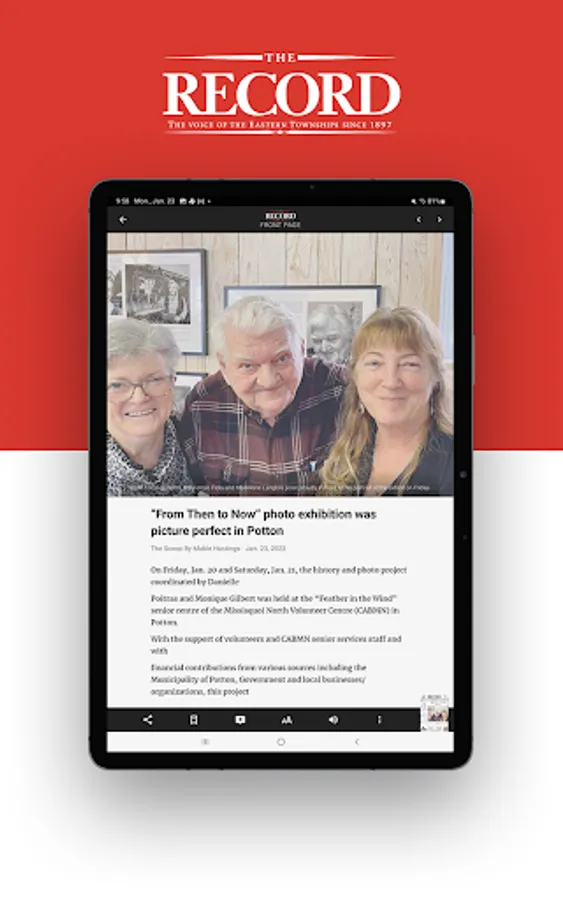 The Sherbrooke Record app keeps you up-to-date on local Sherbrooke news wherever you go. Enjoy the digital features of our e-edition like social sharing to Facebook and Twitter. When you need to be offline, just download the edition to your device and save for later. Get in-depth coverage on local, regional, and national news, sports, business, lifestyle, and more straight to your phone or tablet.